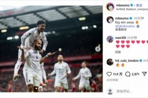 > 闪击破红军!姆贝莫社媒庆祝胜利:关键的客场胜利🔥!